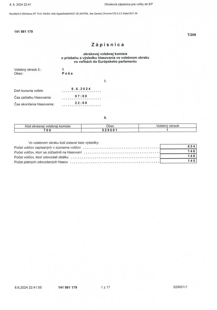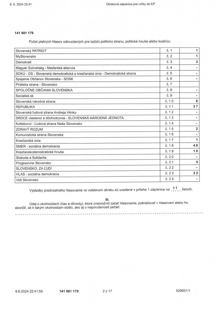 Zápisnica OVK o výsledku a priebehu hlasovania vo voľbách do EP Typ: PDF dokument, Velkosť: 752.04 kB